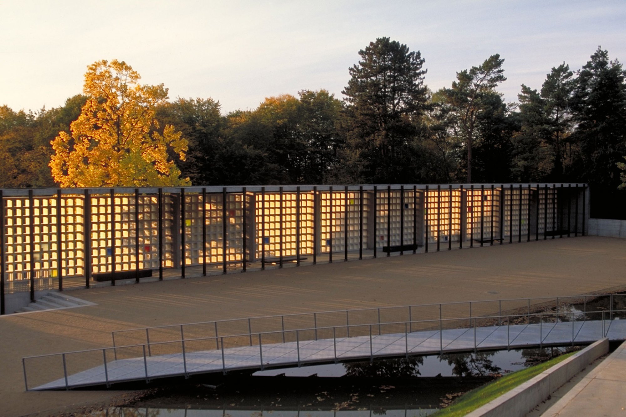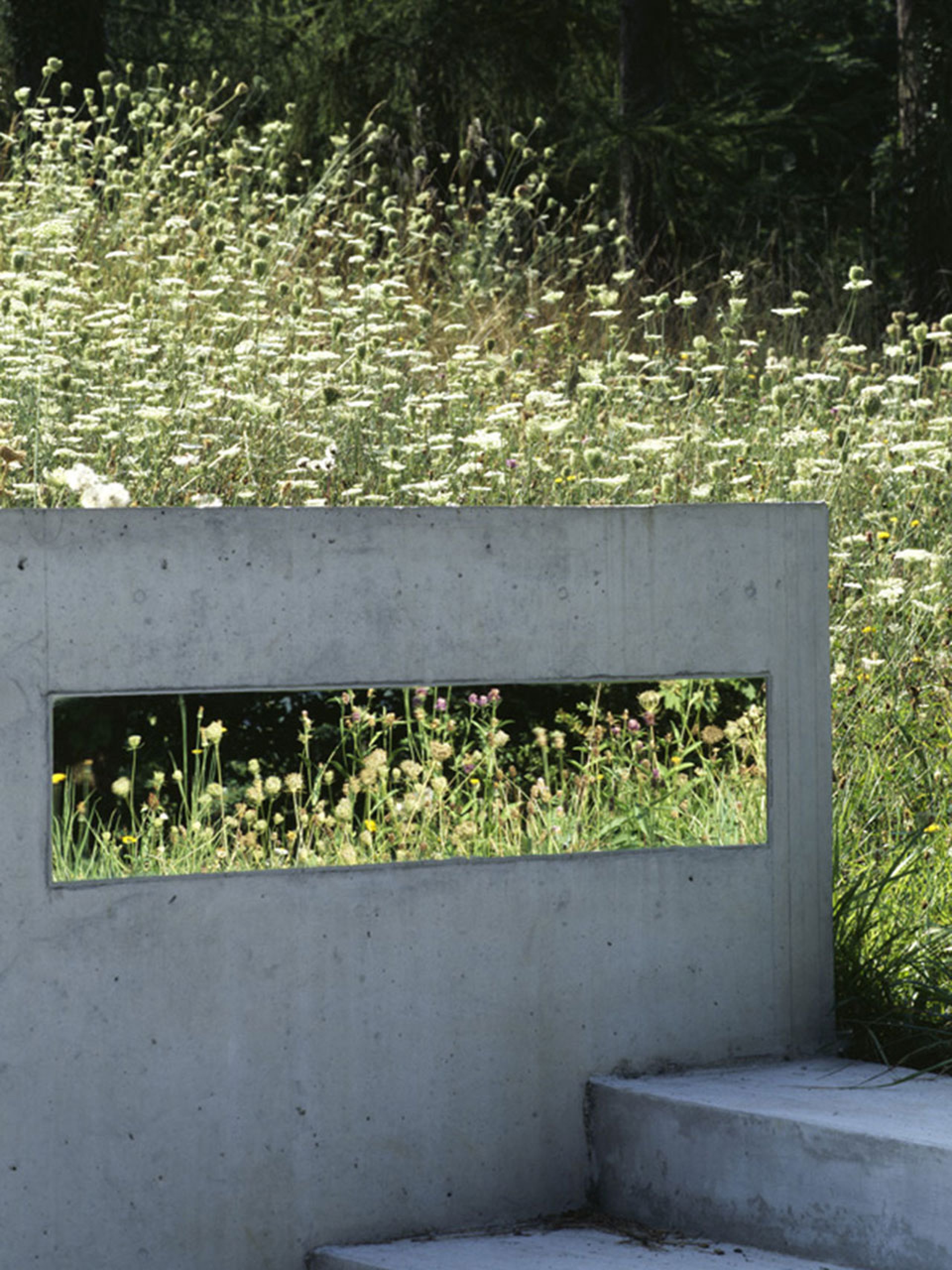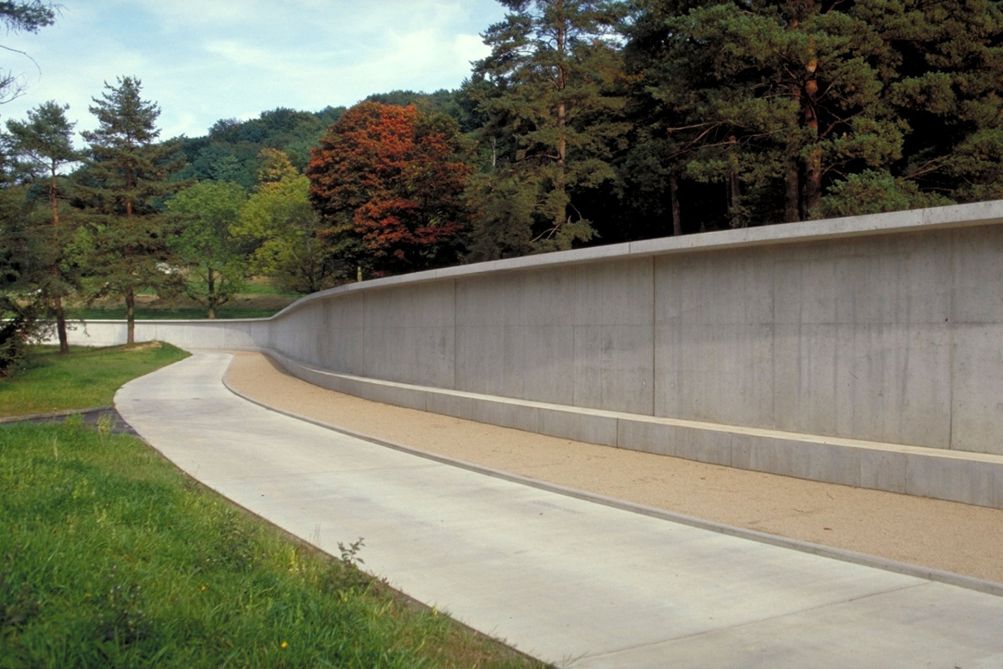 Der Entwurf löst die Symmetrie des Friedhofs zur angrenzenden Landschaft hin auf. Von der mächtigen Hauptachse führt der Weg in weiten Schwüngen gegen den Wald empor. Hinter dem Urnengebäude weitet er sich überraschend zu einem langgezogenen Platz, bietet dem Auge gefasste Ruhe vor dem Hintergrund wogender Haine am Hang. Über eine Brücke steigt der Weg durch den Waldgarten in sanft geschwungene Wiesenfluchten. Architektonische Zeichen und die horizontalen Linien der Wege durchwirken den Raum.