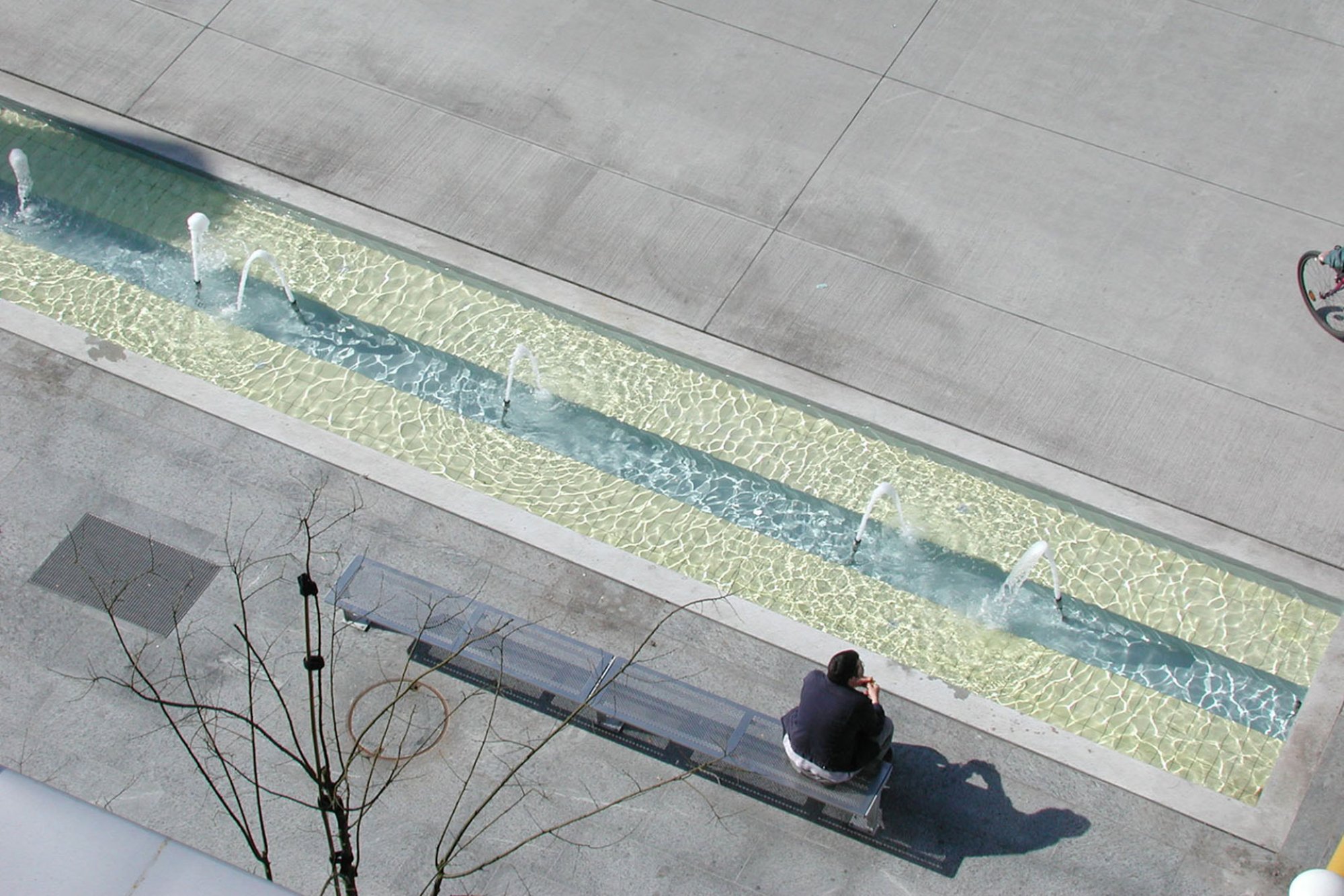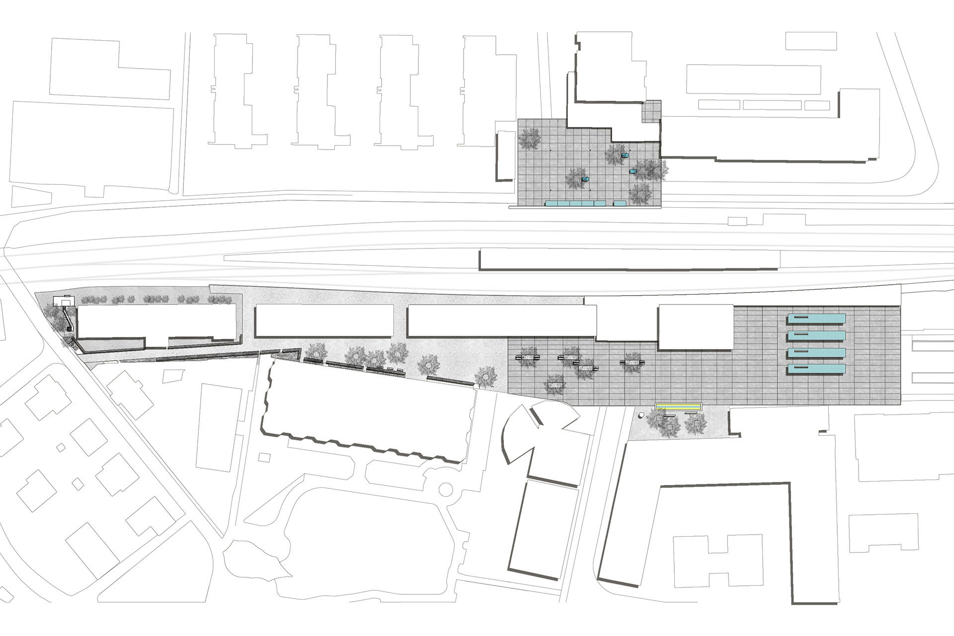 Entgegen dem inneren Reflex, mit Gestaltungs- und Möblierungsstrategien Ordnung zu schaffen, tritt im Entwurf ein Programm von absoluter Offenheit und Gleichberechtigung für alle Teilnehmer in Kraft. Leere organisiert den Raum und schafft erlebbare Identität. Nun findet eine langsame Gleichzeitigkeit von Bewegungen auf dem Platz statt. Der Raum wird attraktiv. Taxi kreuzt Bus, Velo umkreist Skater, Mütter schieben ihre Kinderwagen, Autos patrouillieren und keiner hupt.