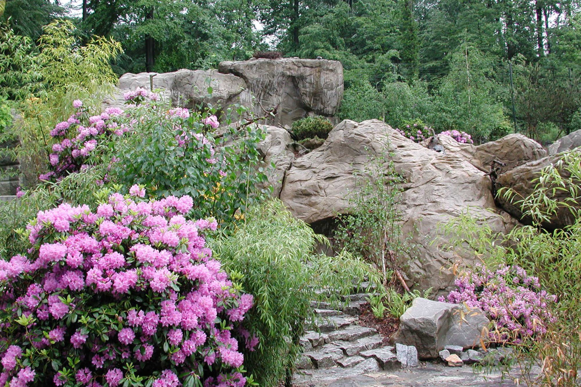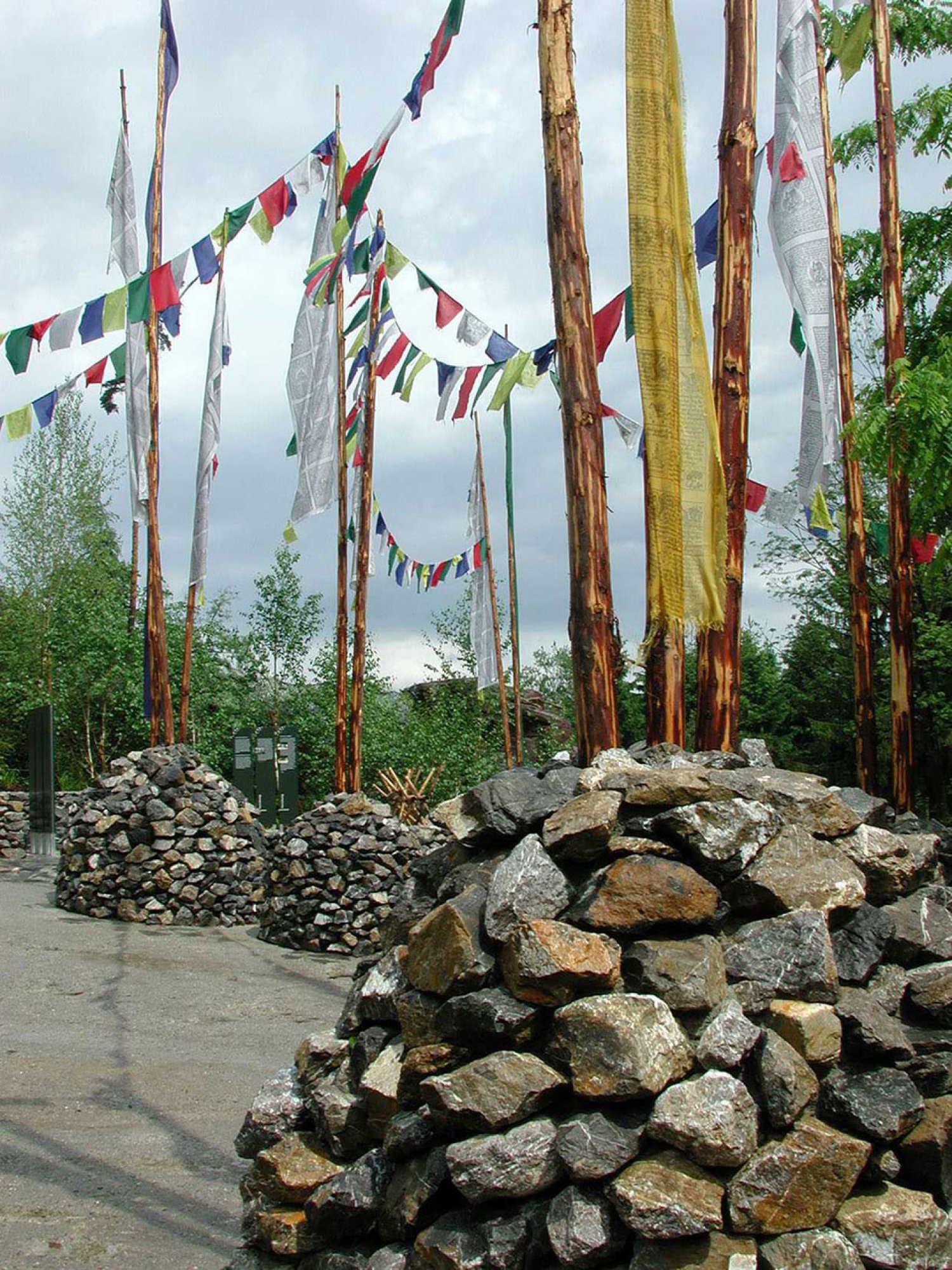 Fels, Stein, Kies und Sand sind die Leitmaterialien dieses Zooteils. Durchbrochen wird das karge Bild von wenigen Pflanzen des Himalaya wie Rhododendren, Himalaya-Birken, Legföhren, Horstgräsern und Bambus. Die Geländeform, die locker verteilten Pflanzen und überzeugende Fels-Nachbildungen tragen das Bild des Himalaya-Hochlandes in den Zürcher Zoo.