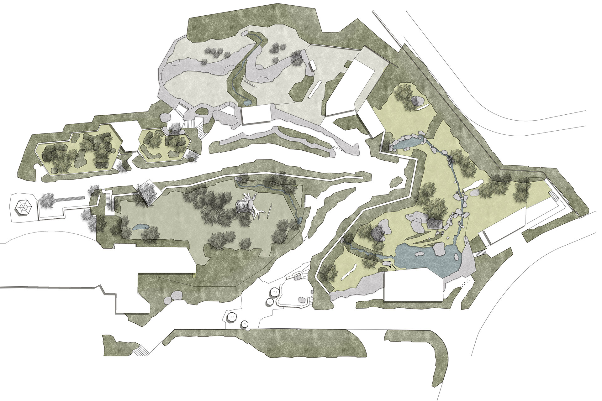 So wird der Lebensraum der Schneeleoparden im Hochgebirge dem Besucher als felsig-zerklüftete Berglandschaft vermittelt. Das Habitat des seltenen Sibirischen Tigers zeigt einen Ausschnitt aus einer gebirgigen Graslandschaft mit Nadel- und Laubwald. An der tiefsten Stelle der Anlage sammelt sich das Wasser der Bachläufe zu einem See. Lediglich durch eine Glasscheibe getrennt können die Besucher hier weltweit erstmals schwimmende Tiger über und unter Wasser beobachten. Die Anlage der mongolischen Wölfe ist der Tundra nachempfunden. Einzelne Bäume überschatten die offene Steppenlandschaft, Hügel, Felsbrocken, Höhlen, umgestürzte Bäume und ein Wasserlauf strukturieren sie und bieten den Tieren Rückzugsraum. Die Anlage des Kleinen Pandas basiert auf den Grundstrukturen der alten Anlage und zeigt einen Ausschnitt aus dem feuchtkühlen Berg- und Bambuswald an den Südosthängen des Himalaya.