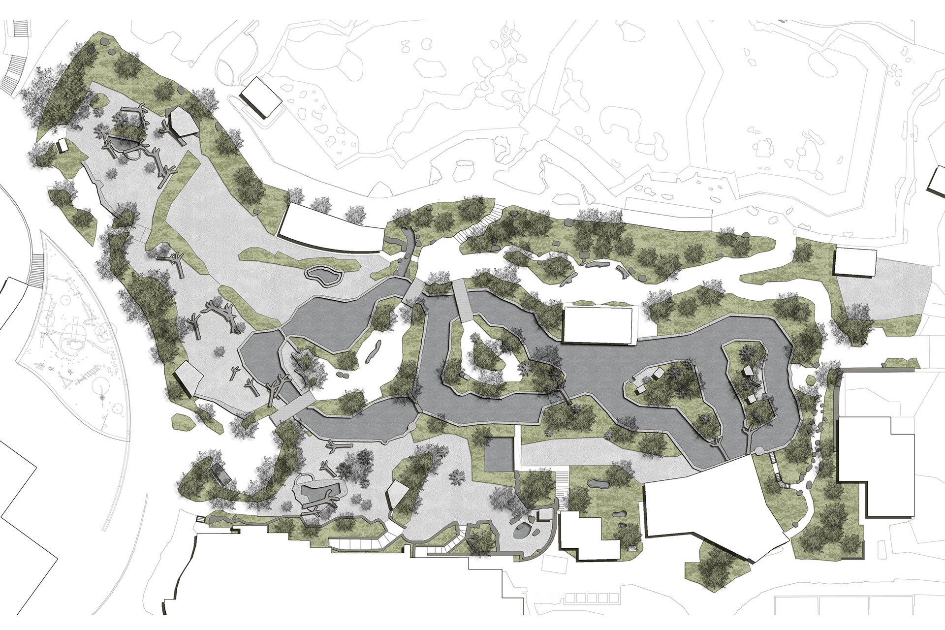 Der Besucherunterstand ist einem Posten der brasilianischen Umweltpolizei nachempfunden. Zwischen Aktenordnern, in denen getrocknete Tierhäute dokumentiert sind, und der Nachbildung eines Schmuggler-Gefängnisses wird über die Problematik des illegalen Tierhandels informiert. Für den Zoobesucher stehen Feldstecher zur Verfügung, mit denen die Äffchen auf der gegenüberliegenden Insel ins Visier genommen werden können. Ihre Beliebtheit bei den Besuchern verdankt die Anlage wohl dem engen Kontakt mit den Tieren und der exotischen Opulenz dieses grünen, wasserreichen Lebensraumes mit seiner urwaldartigen Vegetation.