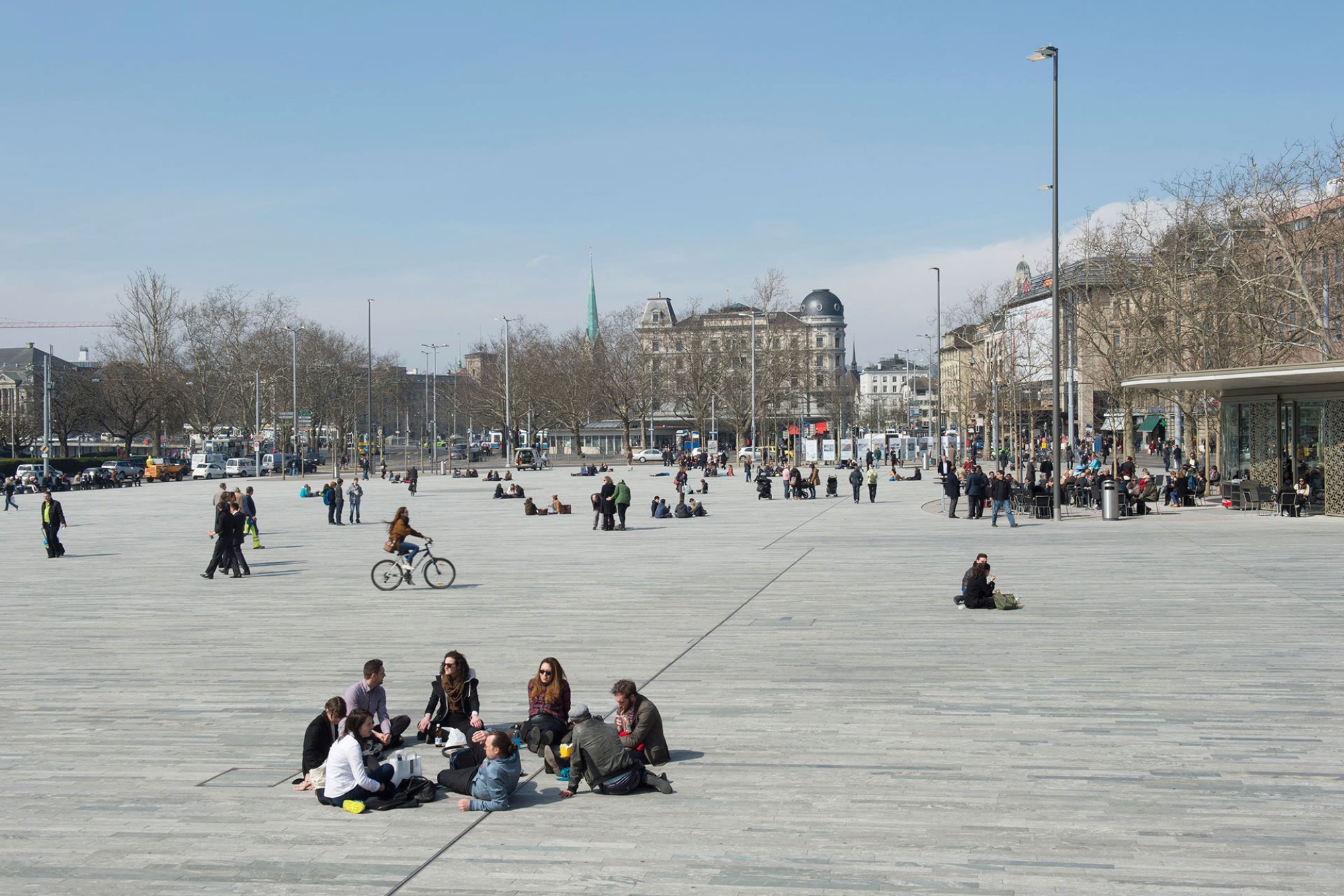 Zwischen der Altstadt, rauschendem Verkehr, klingender Kultur und dem See lag bis 2011 die berühmte Sechseläutenwiese – während Anlässen intensiv genutzt, in den Zwischenzeiten Restfläche auf wertvollstem Grund. Im Rahmen des Gesamtprojektes 'Opernhaus, Parkhaus Opéra und Sechseläutenplatz' wurde sie zum Platz umgestaltet.