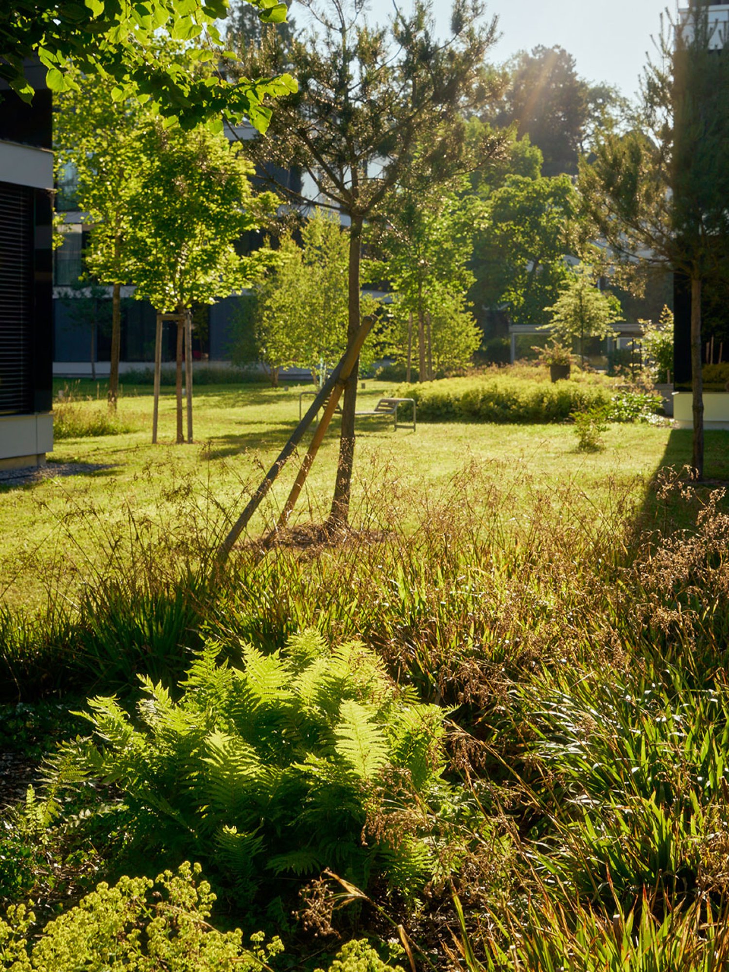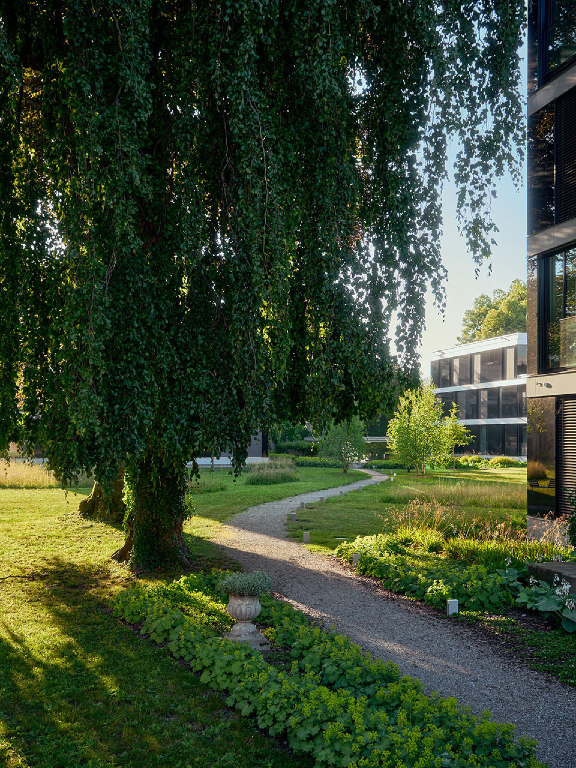 Mit der Entwicklung und der zeitlichen Veränderung des Baumbestandes ist in einer späteren Etappe mit einem detaillierten Park- und Pflegekonzept der zukünftige Baumbestand und die Parkqualität sichergestellt worden. Zur Aufwertung des Parks wurden die Parkränder verdichtet und der grüne, umlaufende Rahmen gestärkt. Bäume wurden nachgepflanzt, Zukunftsbäume gesetzt und weitere geplant, damit ein wertvoller Baumbestand nachwachsen kann und der wertvolle Parkgarten auch in Zukunft erhalten bleibt.