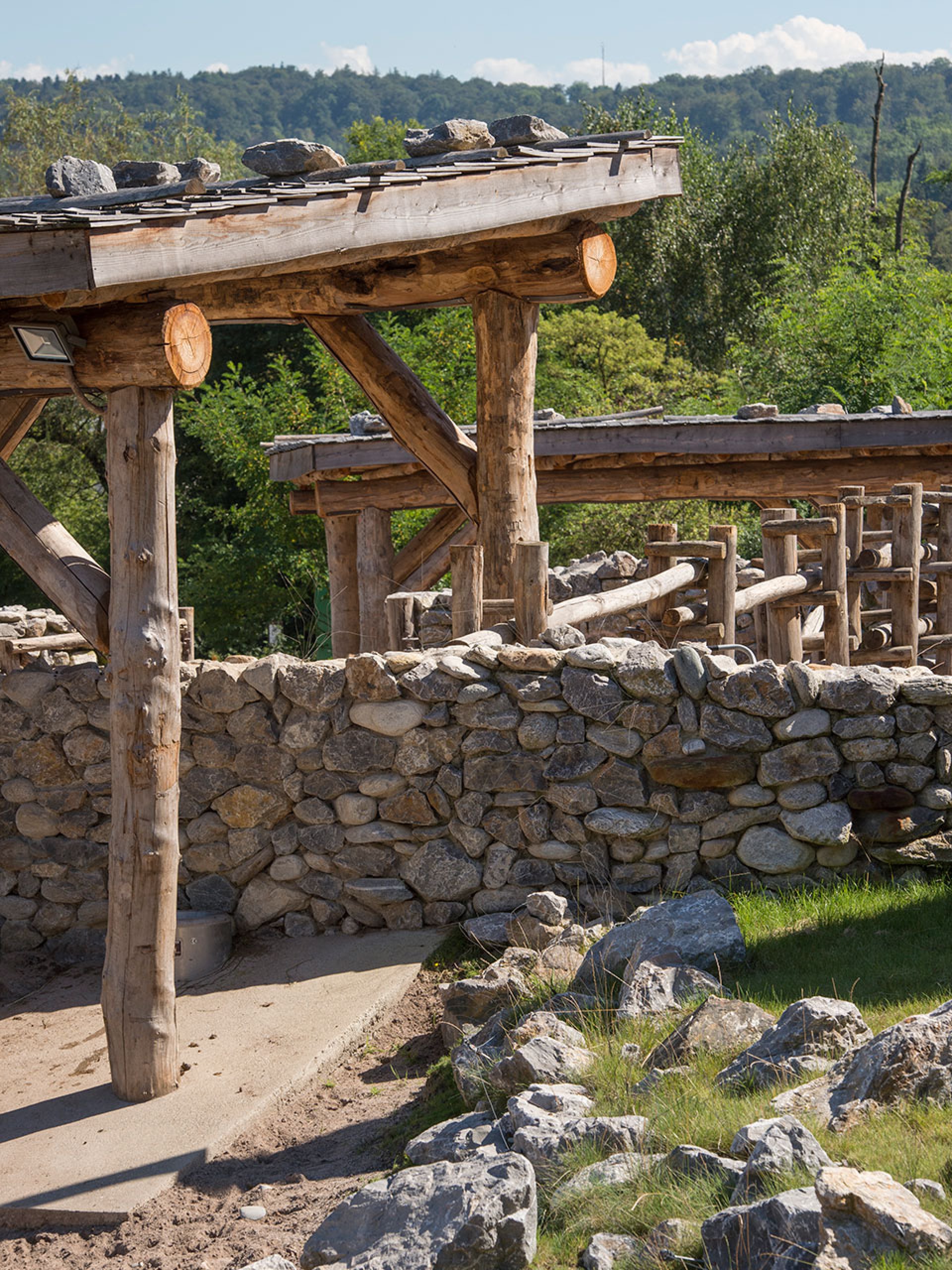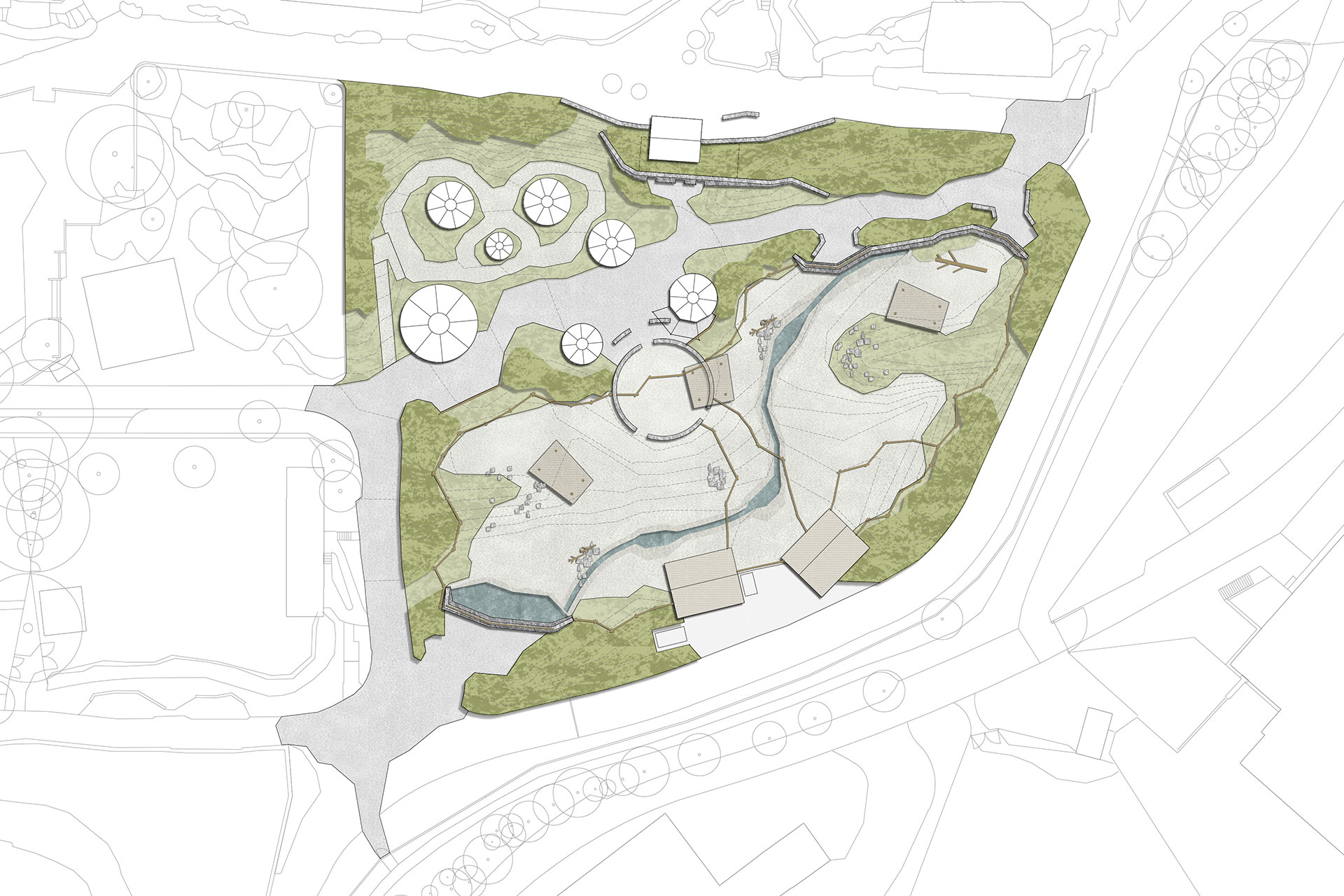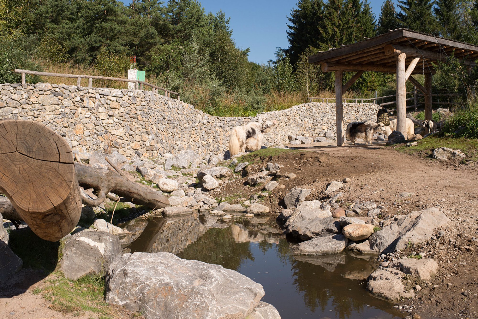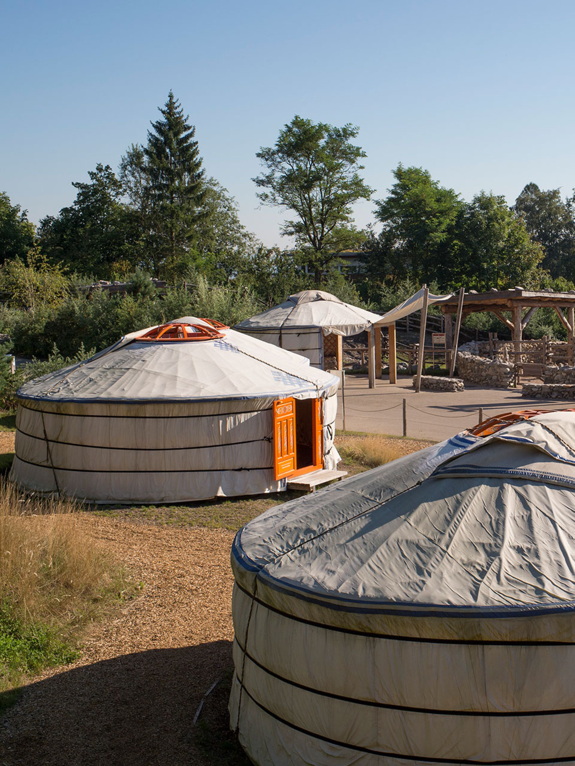In der Nähe der Jurten und des Wasserbeckens für die Tiere ergänzen runde Granitsteine das Bild und wecken – im visuellen Zusammenspiel mit den Holzzäunen und den Gebäuden – das Gefühl einer kultivierten Naturlandschaft. Sieben echte Mongolische Jurten nehmen die Ausstellungsräume auf, in denen das Zusammenleben von Mensch und Tier in der natürlichen Extremlandschaft der Mongolei erläutert wird. In diesem Sinne werden mit Trampeltier, Hausyak und Kaschmirziege auch nicht Wild-, sondern Nutztiere der Region präsentiert. Praktische Elemente wie die Erschliessung, die Managementhäuser und der Kiosk sind gestalterisch in ein Gesamtbild integriert, das nicht archetypische Ideallandschaften, sondern die reale, von Menschen genutzte Naturlandschaft der Mongolei verständlich machen will: eine wilde, steinige und harte Landschaft.