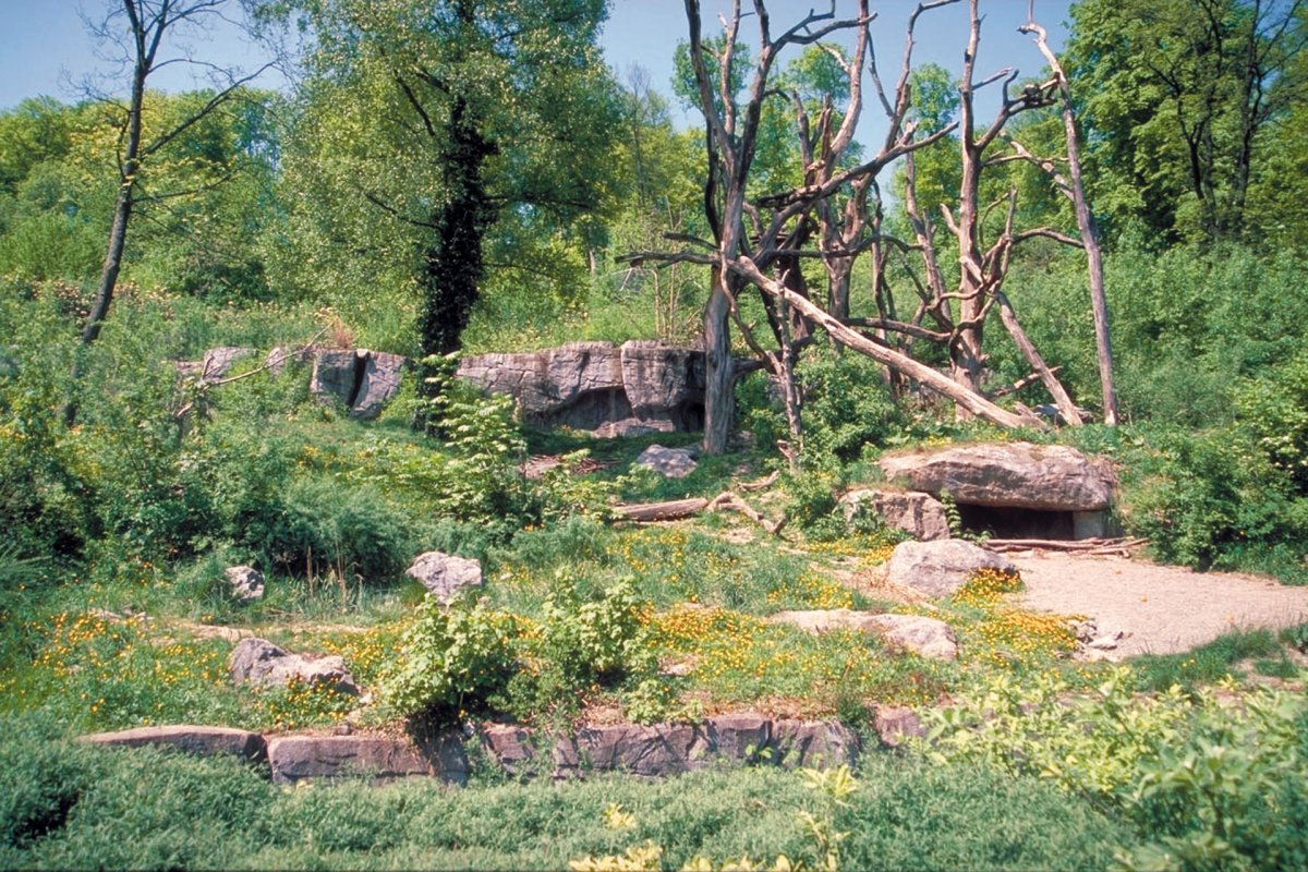 Verschiedene Aussenanlagen mit Stein- und Holzstrukturen, Sandsuhlen sowie Hochstammbäumen grenzen an die beiden Ställe an. Durch Wildhecken werden die Besuchereinblicke in die Anlagen begrenzt und Rückzugsorte für die Tiere geschaffen. Durch die ökologische Aufwertung des Bachufers und Ergänzung des Baumbestandes wird auch für Flora und Fauna einen Mehrwert geschaffen.