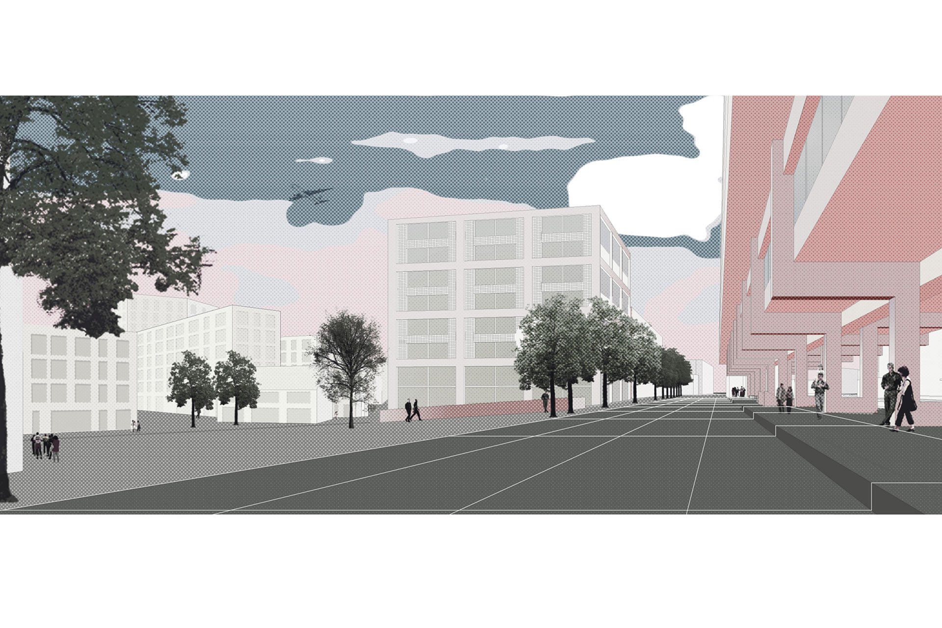 Bestehende Baumgruppen an den nahegelegenen Kreuzungsbereichen der Lindenstrasse werden zu strassenraumübergreifenden Baumkonzentrationen ergänzt und zeichnen die Eingänge in das Bahnhofsareal aus. Baumreihen begleiten zum Bahnhofplatz, der mit freistehenden Bäumen akzentuiert ist.