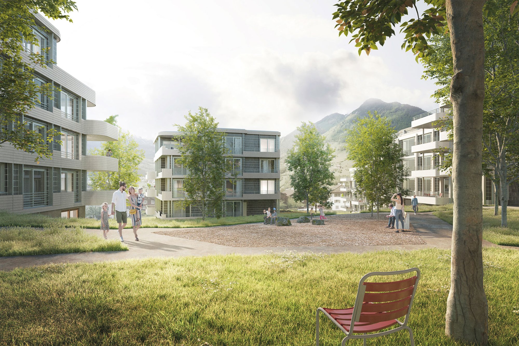 Auf der Kappelmatt entsteht ein vielfältiges Freiraumangebot; ob Wohnen am Bachgarten, im Gemeinschaftsgarten oder im Obstgarten, die Grünräume reagieren auf verschiedenen Nutzungsbedürfnisse und stellen eine atmosphärische Vielfalt an Aneignungszonen und Nischen im Grünraum zur Verfügung. Der naturnahe, begrünte Bachgarten stärkt den Bachraum und bildet einen attraktiven Übergang zum Nietenbach. Der Gemeinschaftsgarten bietet einen wertvollen Spiel- und Begegnungsraum die durch lichte Baumsetzungen akzentuiert werden. In das Wegnetz eingelassene Kiesinseln werden mit Spiel- und Aufenthaltsmobiliar ausgestattet. Sie schaffen zwischen den Gebäuden attraktive Treffpunkte für die Siedlung und laden zu gemeinschaftlichen Nutzungen ein.