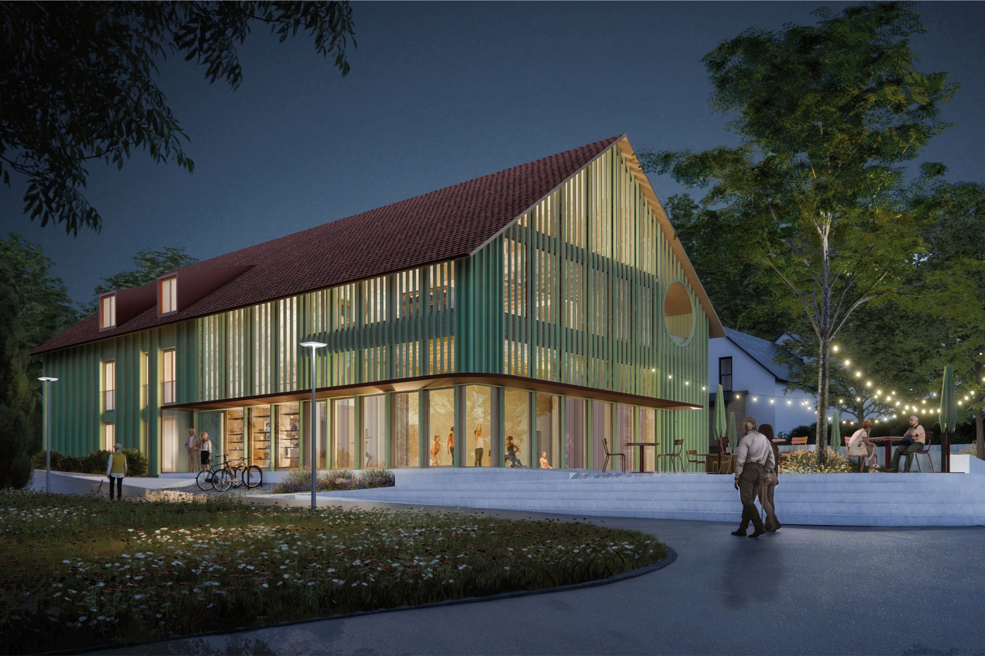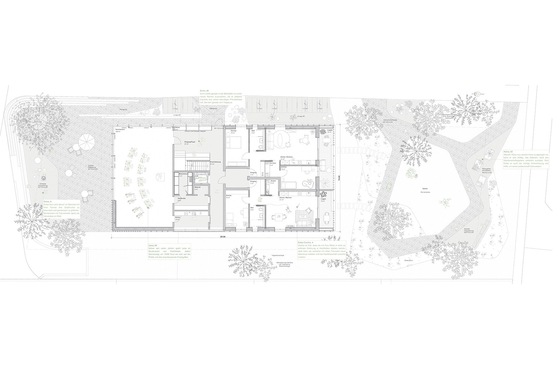 Das neue Gemeindezentrum, mit Gemeindebibliothek, Vereinsraum und Alterswohnungen, inmitten des Ortskerns von Hochfelden ist als ein grosser und kompakter Baukörper konzipiert. Durch die Kompaktheit des Gebäudevolumens bleibt viel Platz für einen abwechslungsreichen Aussenraum. Dieser soll nicht nur für die Bewohnenden, sondern für das gesamte Dorf zugänglich und nutzbar sein und somit im Herzen der Gemeinde neue gemeinschaftliche Aussenbereiche schaffen.